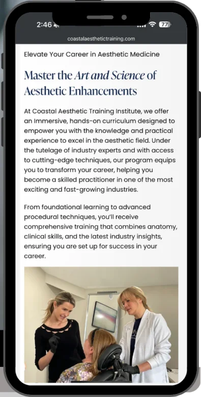 Coastal Aesthetic Training Academy empowers medical professionals with hands-on, expert-led training in aesthetics—but their online presence didn’t reflect the high standard or credibility of their programs. They needed more than just a website; they needed a digital extension of their brand—elevated, polished, and built for growth.