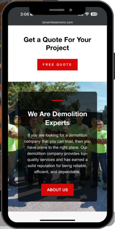 Dynamite Demo Inc. is all about precision, power, and getting the job done right—their website needed to match that same energy. Before our redesign, their online presence was practically nonexistent, offering little in the way of credibility or clarity for potential clients.